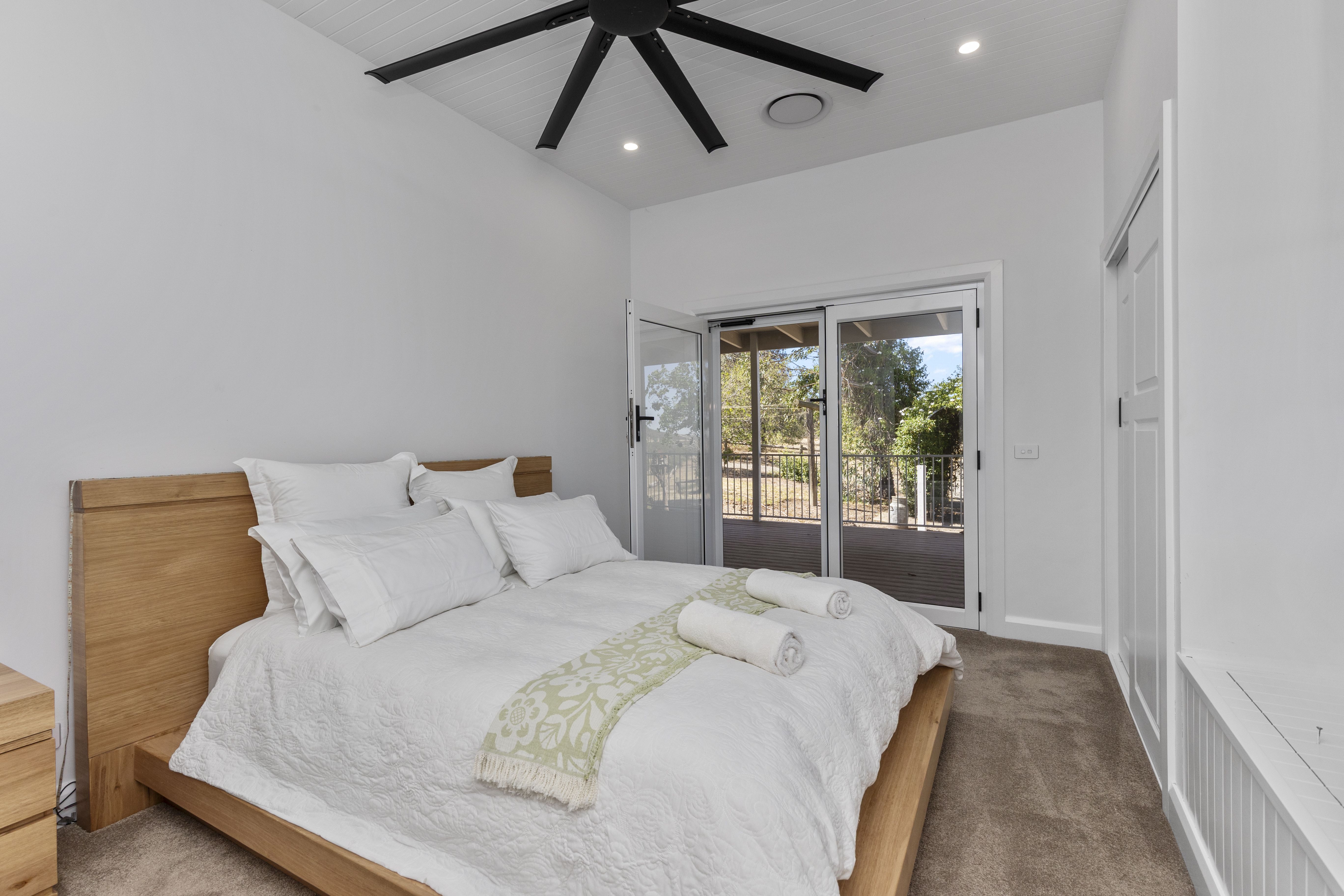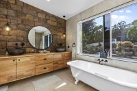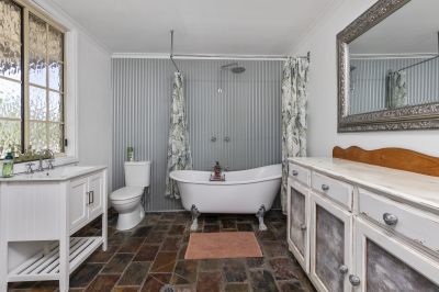 The fully tiled main bathroom offers infloor heating, claw-foot bath, and separate facilities. Ducted reverse cycle air-conditioning throughout for year round comfort.