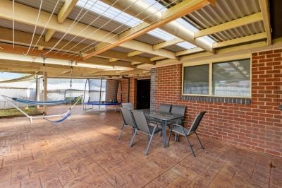 Step outside to an expansive covered entertaining area that overlooks the easy-care rear yard, perfect for relaxed gatherings or quiet evenings. The double lock-up garage offers drive-through access and an additional side entry, providing flexibility for vehicles, trailers, or extra storage. This property also includes a 7kw Solar System to help with the rising cost of living.