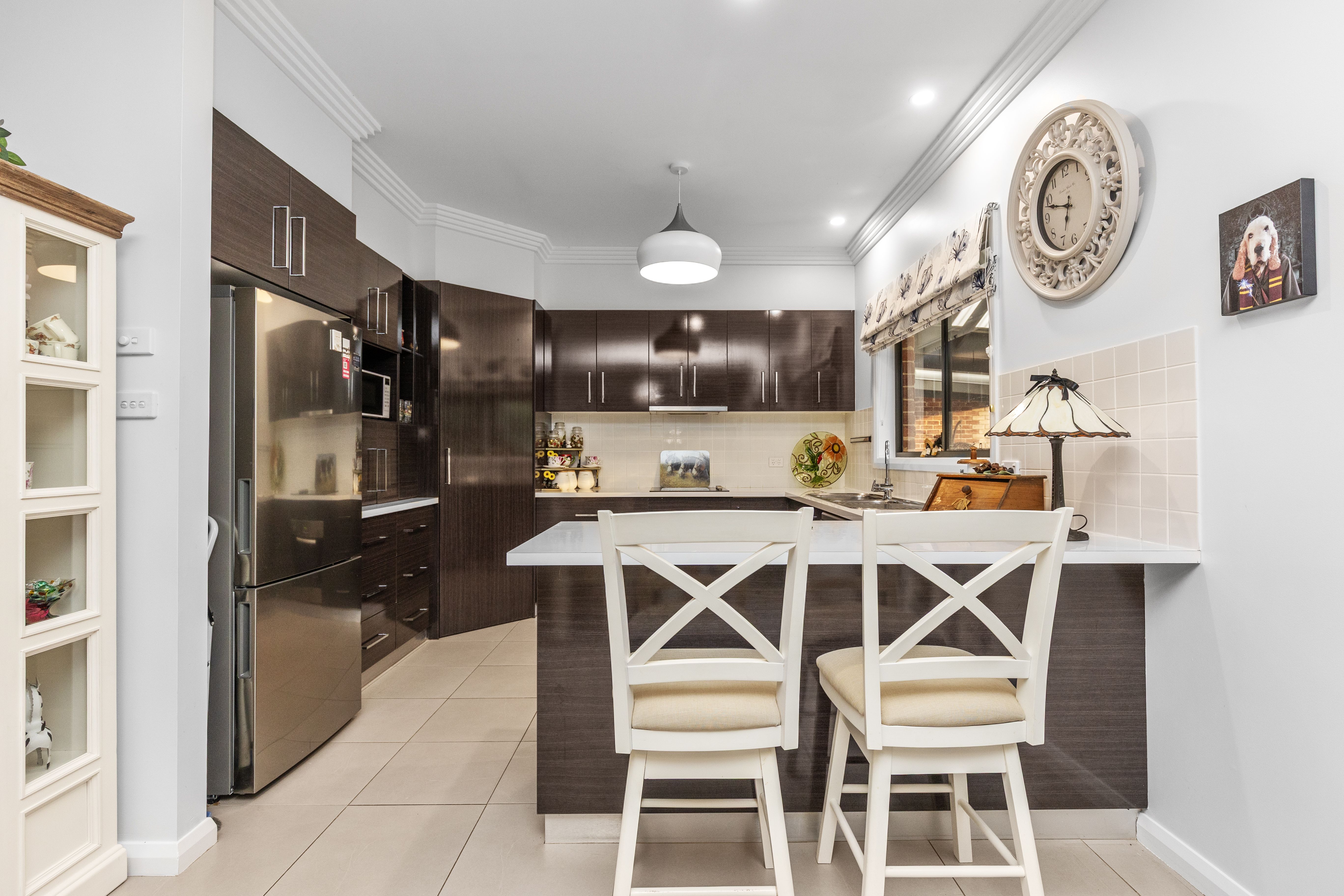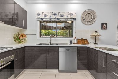 Outdoor living is a standout. The alfresco zone features a fully equipped built-in kitchen with BBQ, sink and dual fridges, overlooking a heated saltwater pool complete with pool shower. Established gardens, hedging and lawns create a resort-style feel while maintaining complete privacy from the outside world.