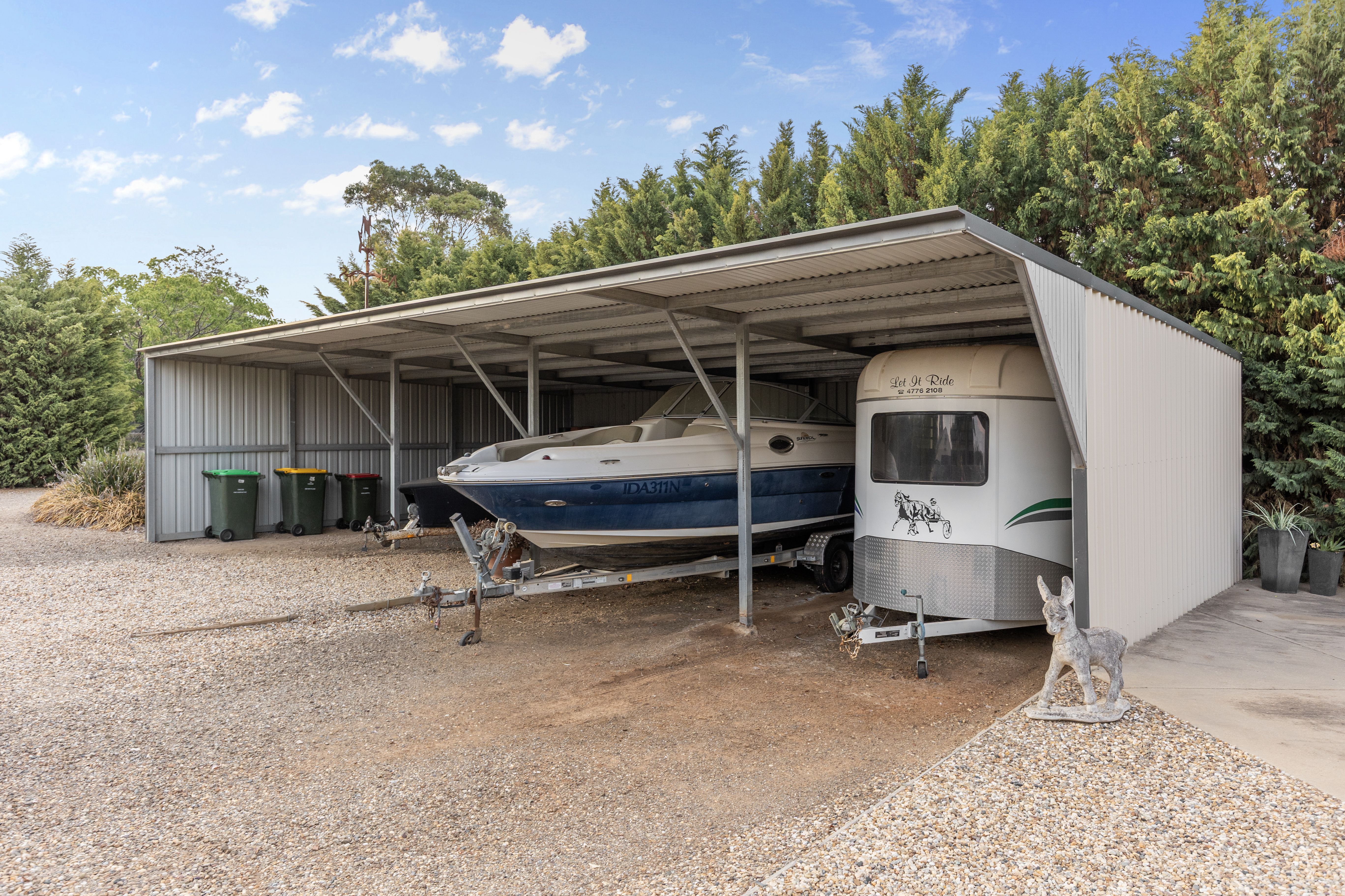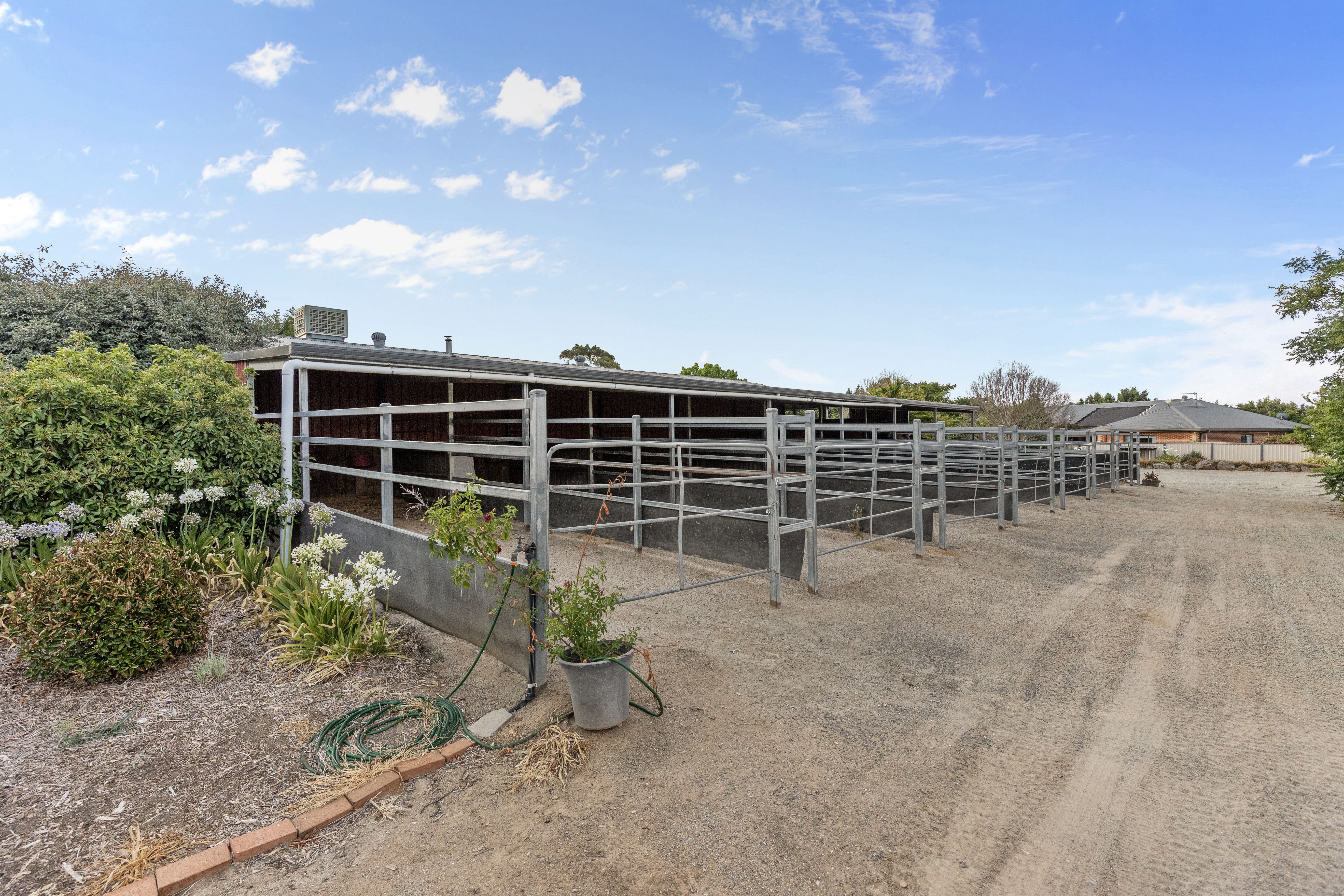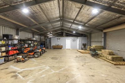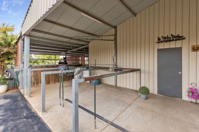 For equestrian or lifestyle buyers, the infrastructure is extensive and thoughtfully planned. Seven stables are supported by six paddocks with quality cattle rail and electric fencing, water to all paddocks, a round yard, two undercover hot and cold wash bays and an impressive 660-metre trotting and exercise track. Additional shedding includes a four-bay shed ideal for tractors, boats and equipment, plus a large covered shed with studio, offering scope for hobbies, storage or ancillary use.