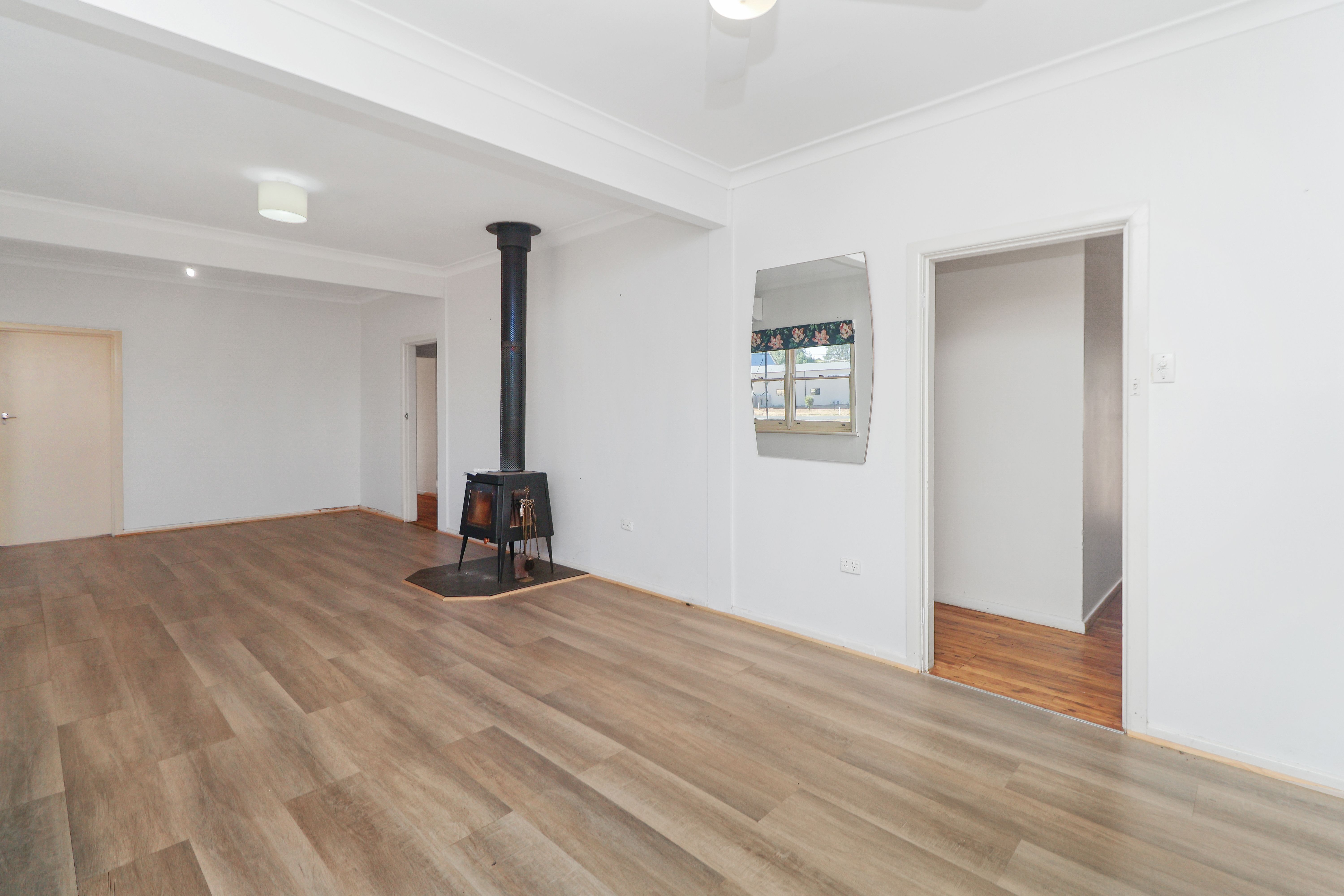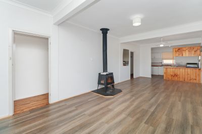 This solid home offers generous and versatile space, classic character, and practical updates, including vinyl plank flooring throughout the main living areas. The inviting lounge room is enhanced by a flued wood fire for cosy winters, plus a reverse‑cycle split system for year‑round comfort.