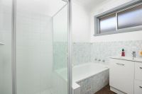 • Fresh, tidy bathroom with shower, vanity, and bathtub