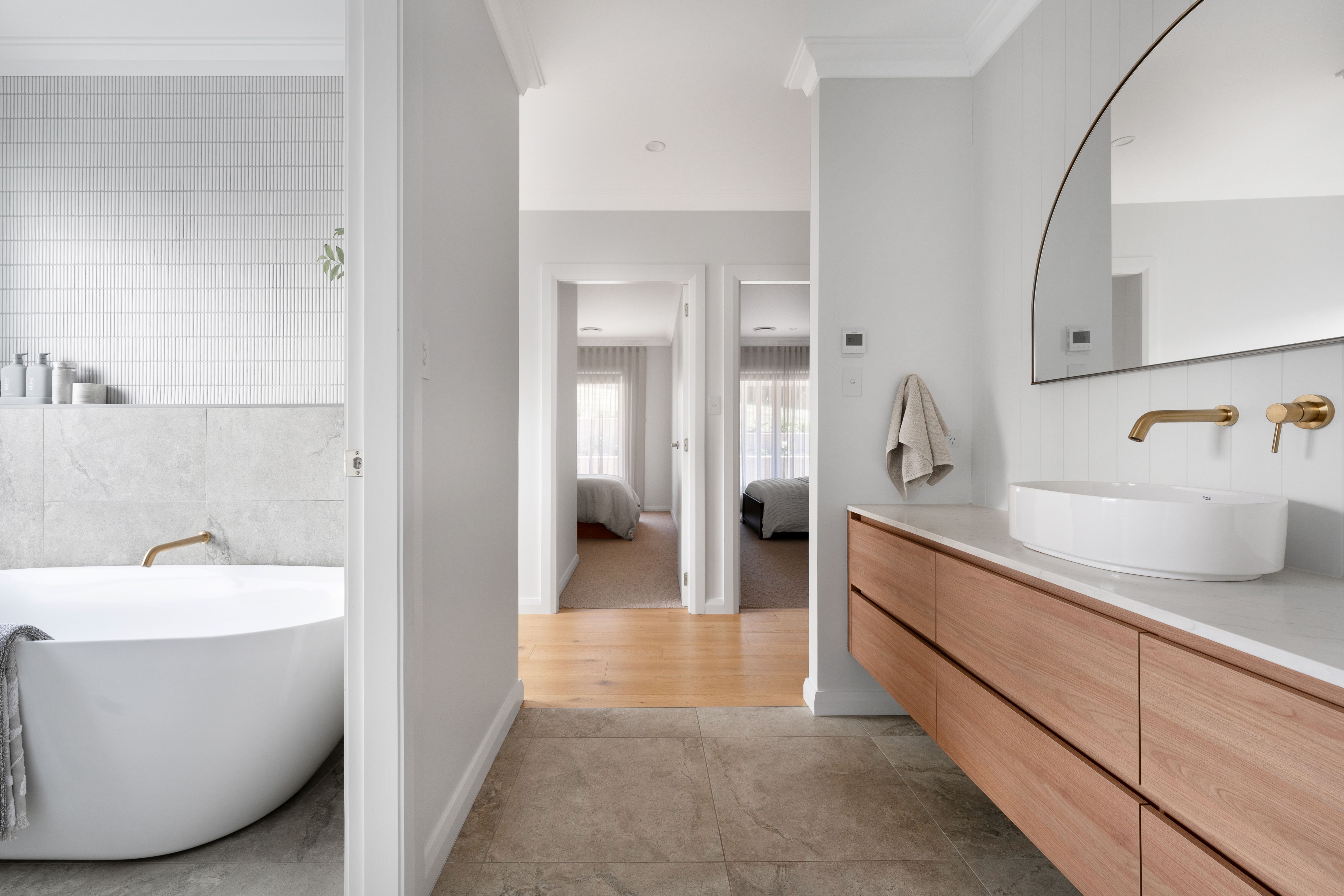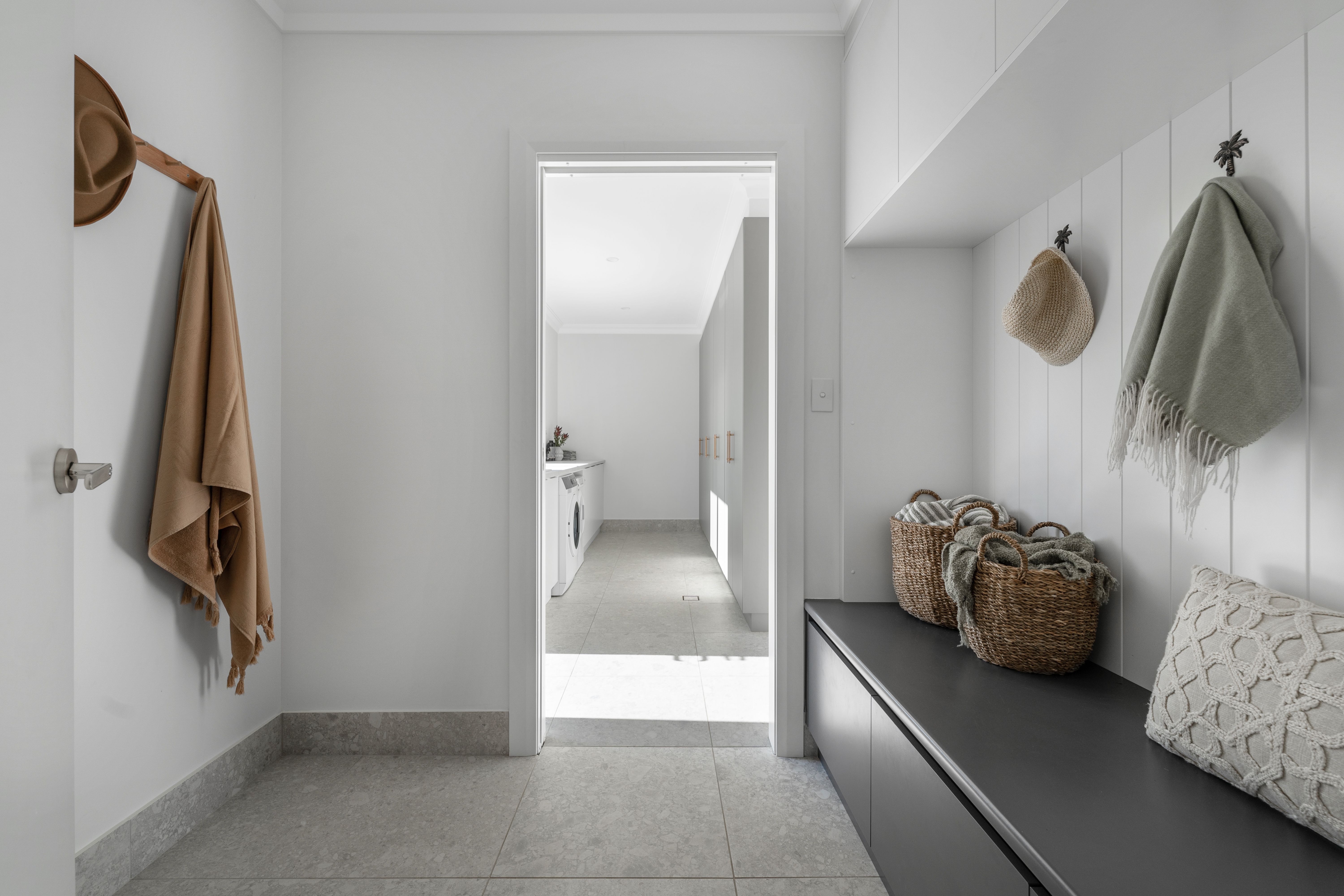 Comfort and practicality have been meticulously integrated. Heated floors extend to the main bathroom, while a cleverly designed drying cupboard in the spacious laundry reflects the builder's attention to everyday liveability. Wool carpets add warmth underfoot, and premium stone surfaces continue throughout the kitchen and bathrooms.
